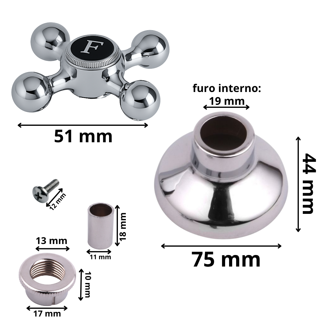 Acabamento Registro Cruzeta Cromado C-52 Metal ;