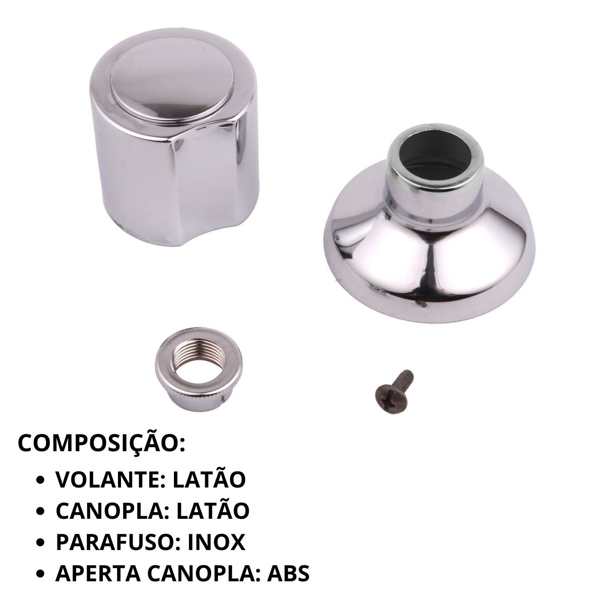 Composição/material: Produto 100% Cromado , Liga de Cobre (bronze e latão) Plásticos de Engenharia