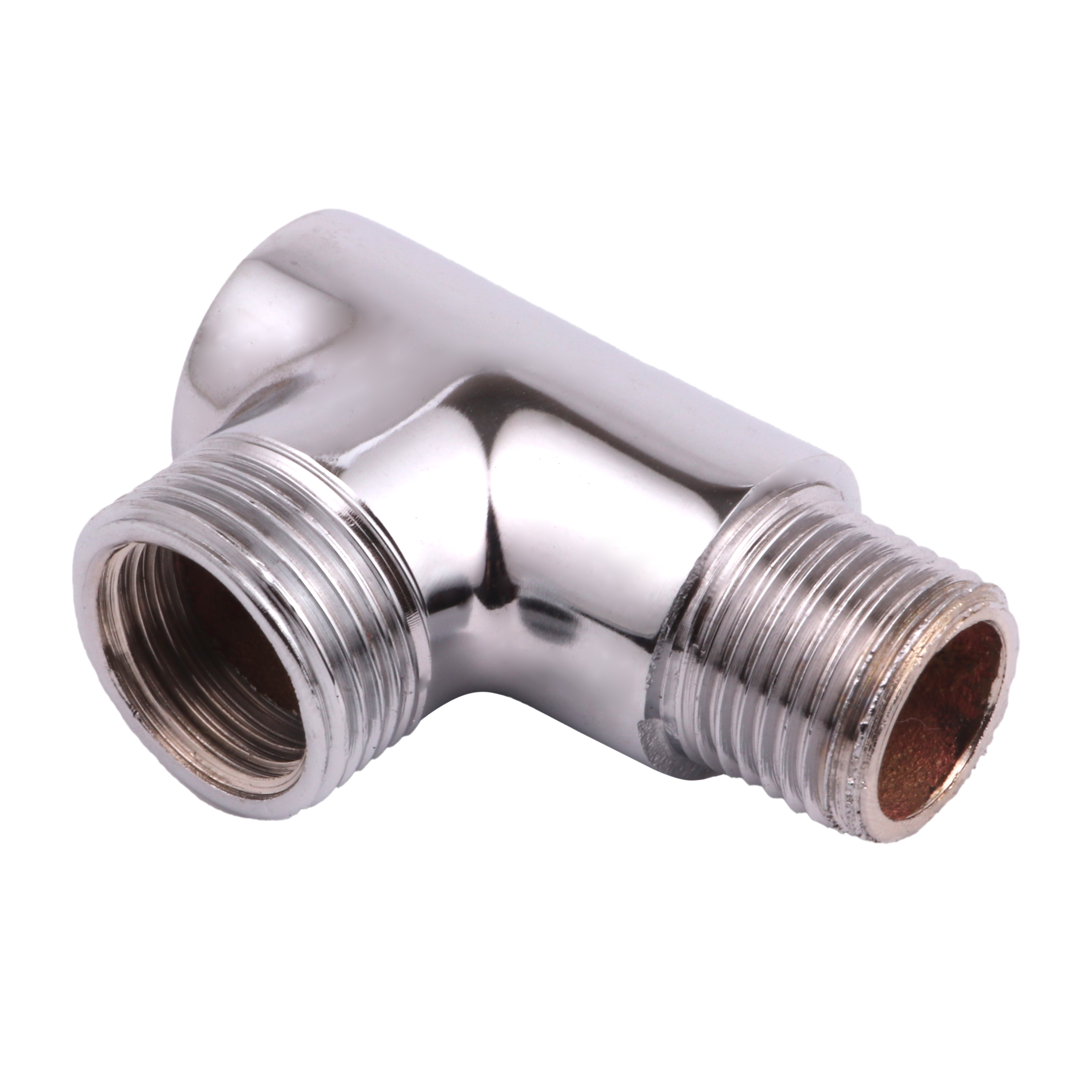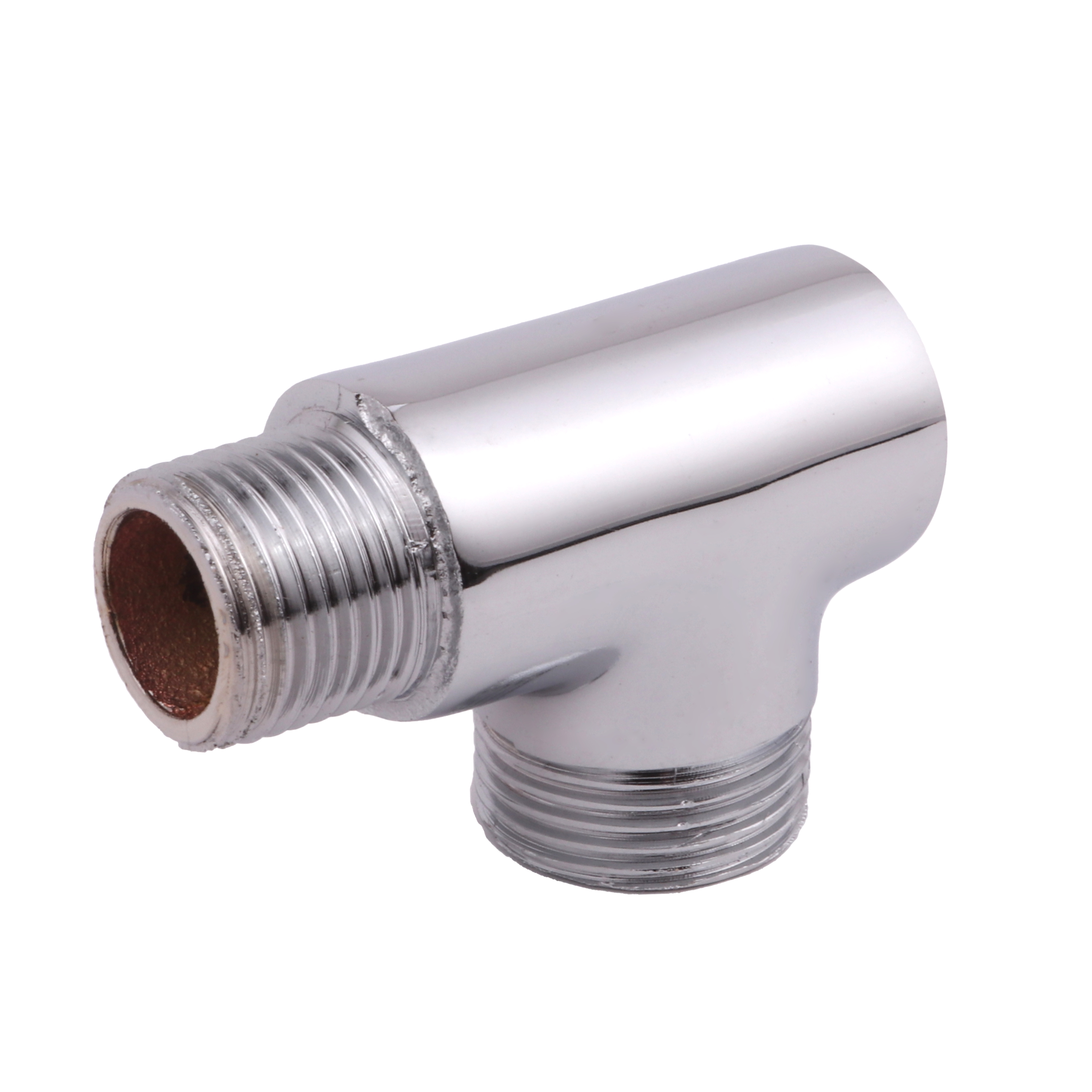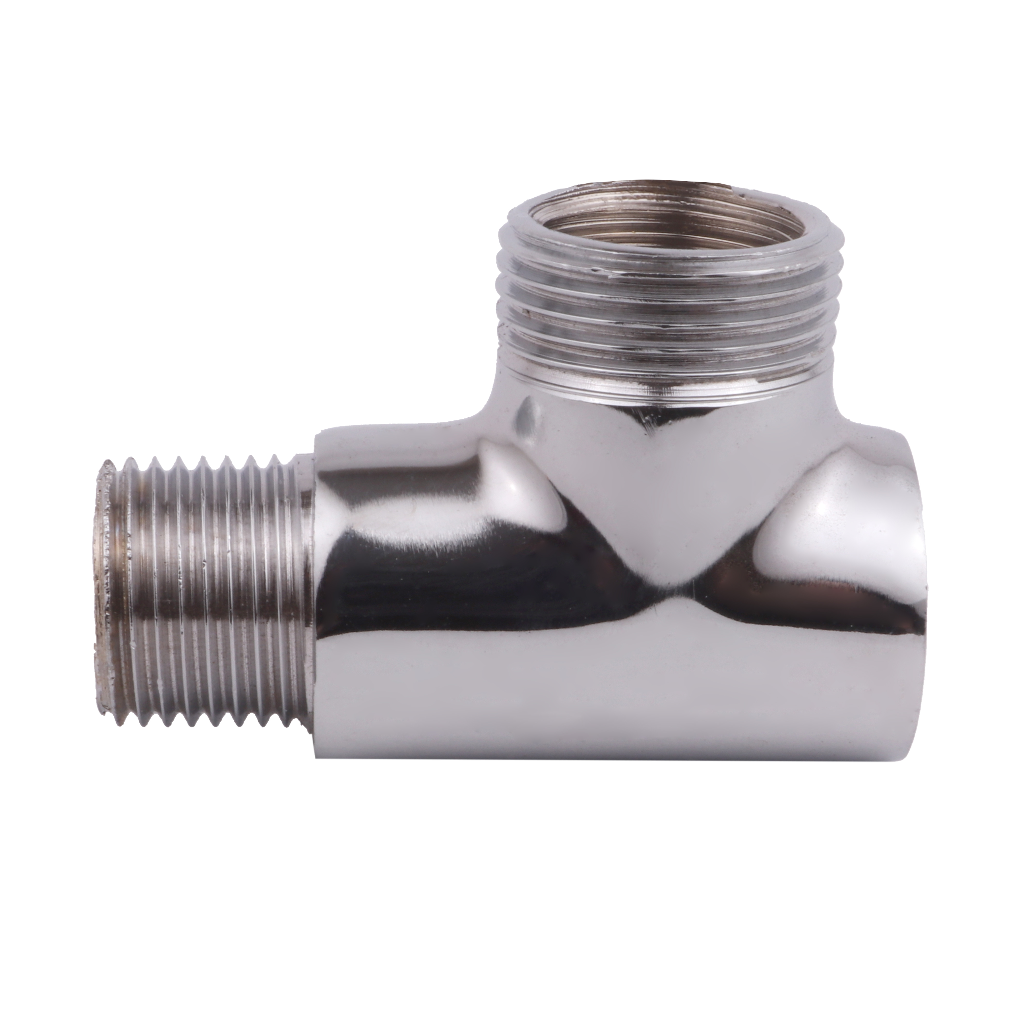 Junção em metal cromado, Ideal para "bifurcar" rede hidráulica externa. Indicado para locais onde se tem uma saída de água e precisa-se ligar dois pontos de entrada de água. Podendo se utilizado em Alta e baixa pressão com Agua quente ou fria.