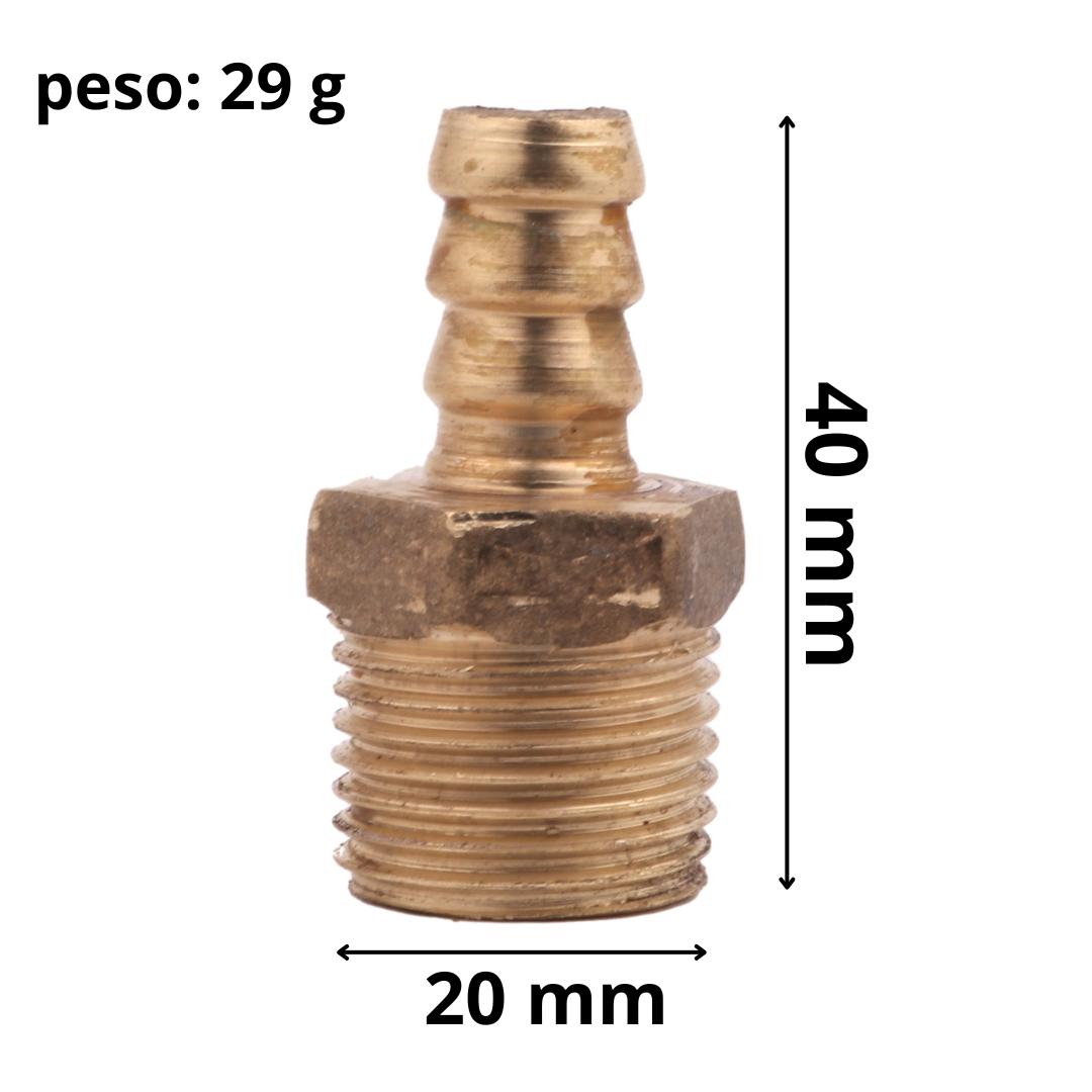 As características do Bico Espigão de Latão Amarelo 1/2 Macho x 5/16 BM para Mangueira de Gás incluem: