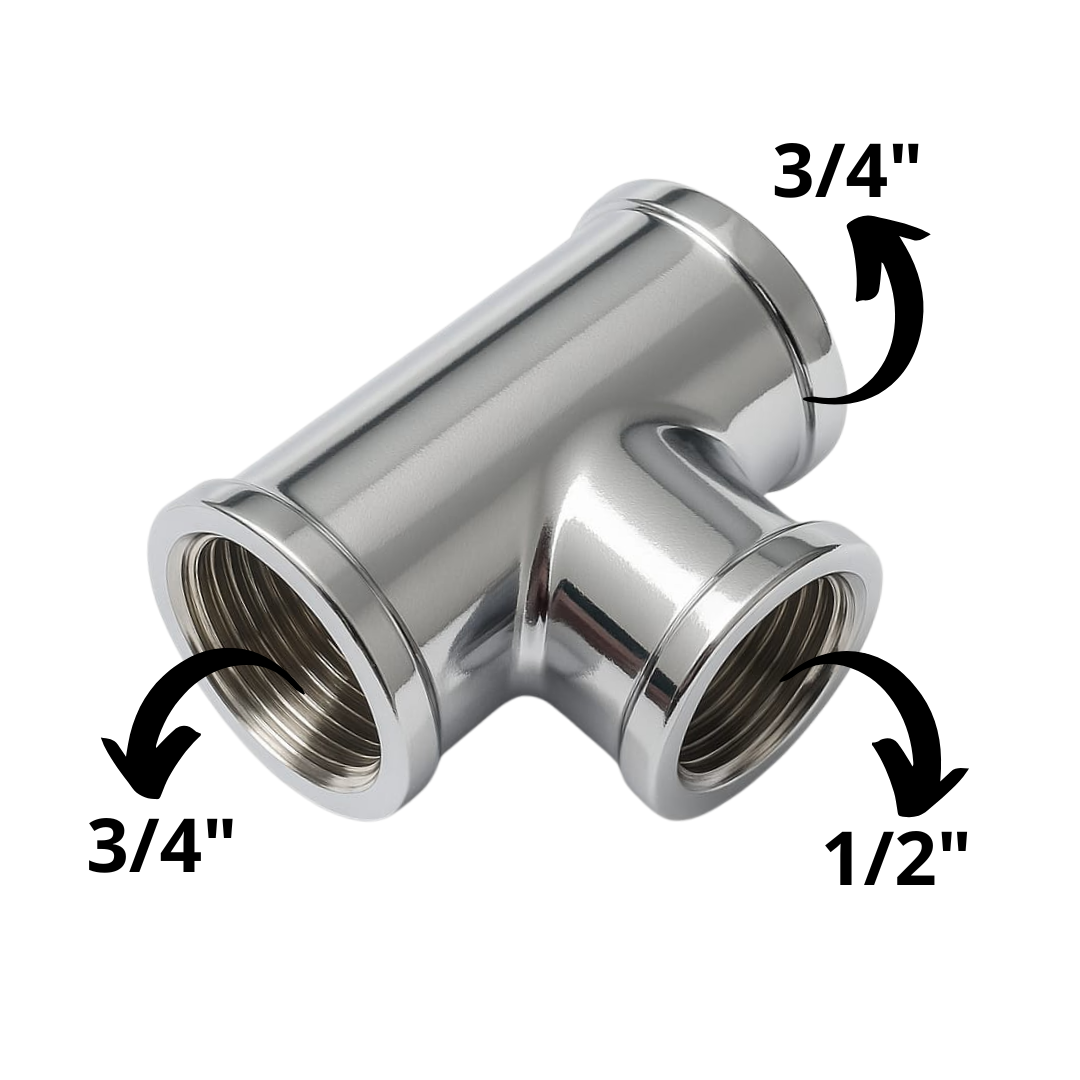 Conexão T Cromado Latão Rosca Fêmea Para Instalação Gás GLP 3/4 X 1/2
