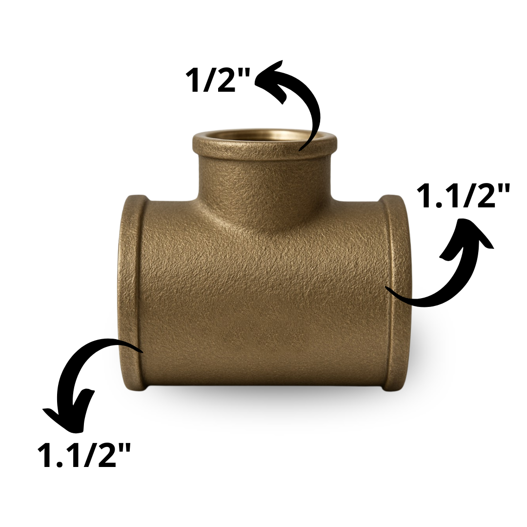 Modelo: Conexão T Redução Latão Rosca Femea Para Gás 1.1/2 X 1/2 Rosca