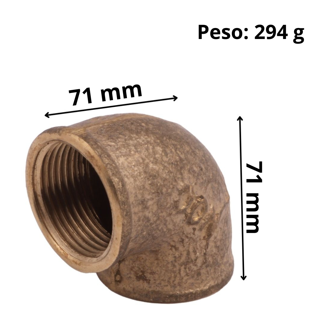 Algumas características do cotovelo/joelho 90 fêmea conexão em latão 1.1/2 rosca x rosca são: