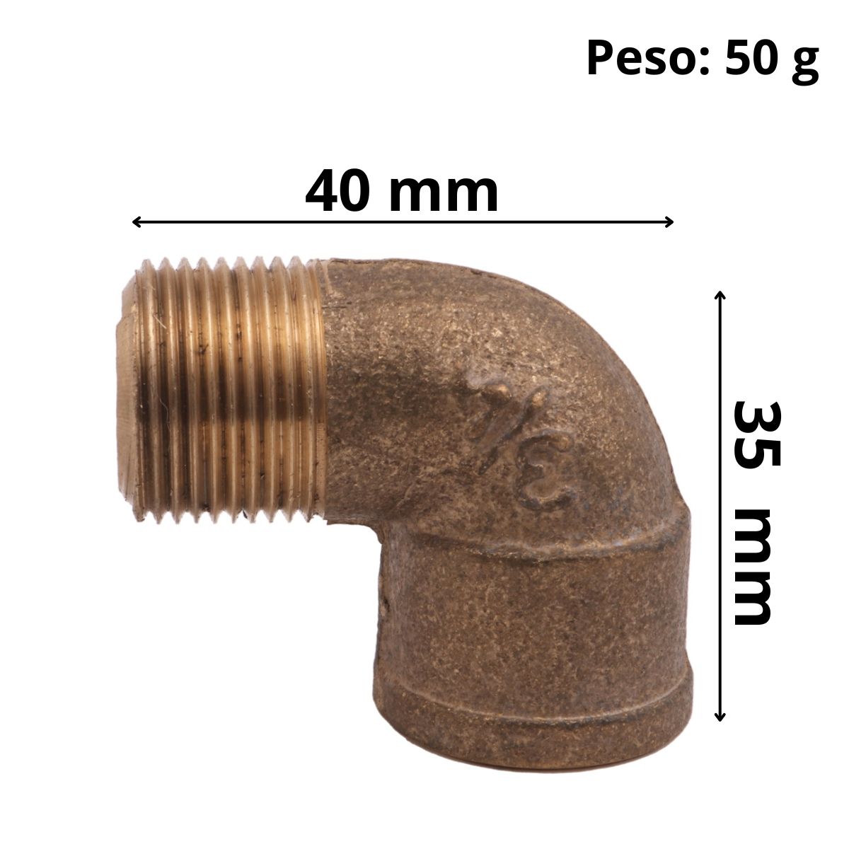 Algumas características do cotovelo joelho rosca macho/rosca fêmea em latão amarelo 1/2 são: