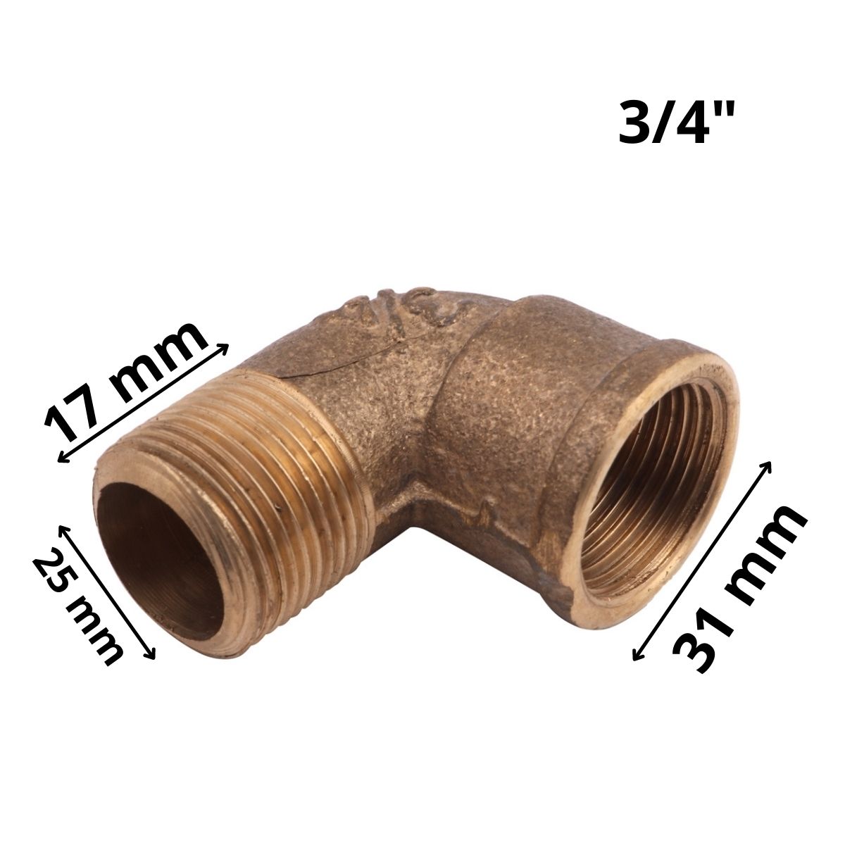Cotovelo Joelho Rosca Macho Rosca Fêmea Latão Amarelo 3/4