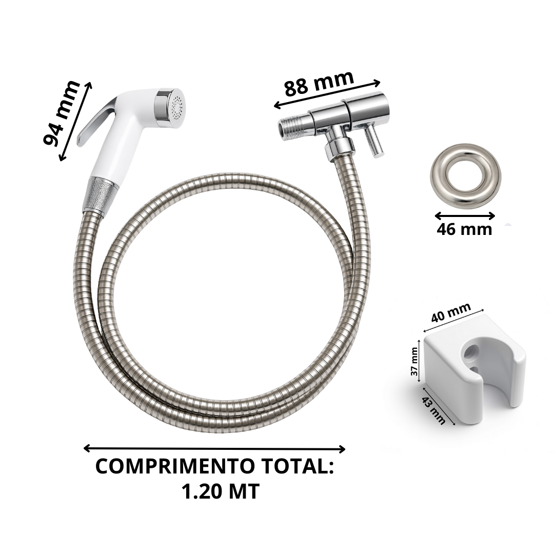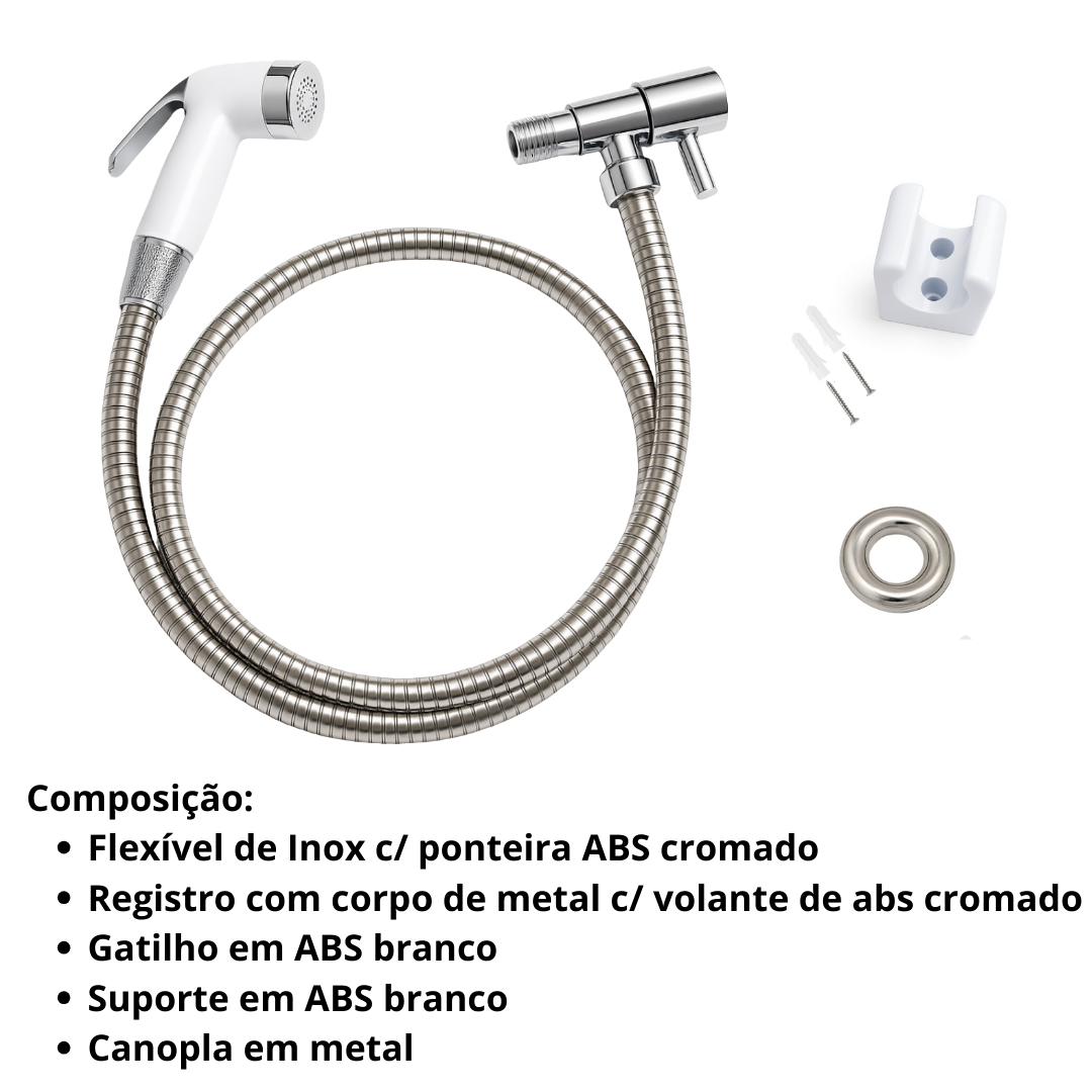 Ducha Completa Íntima Para Banheiro Gatilho ABS 1/2 x 1,20 Registro 1/4 Volta