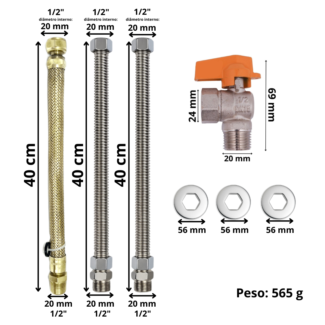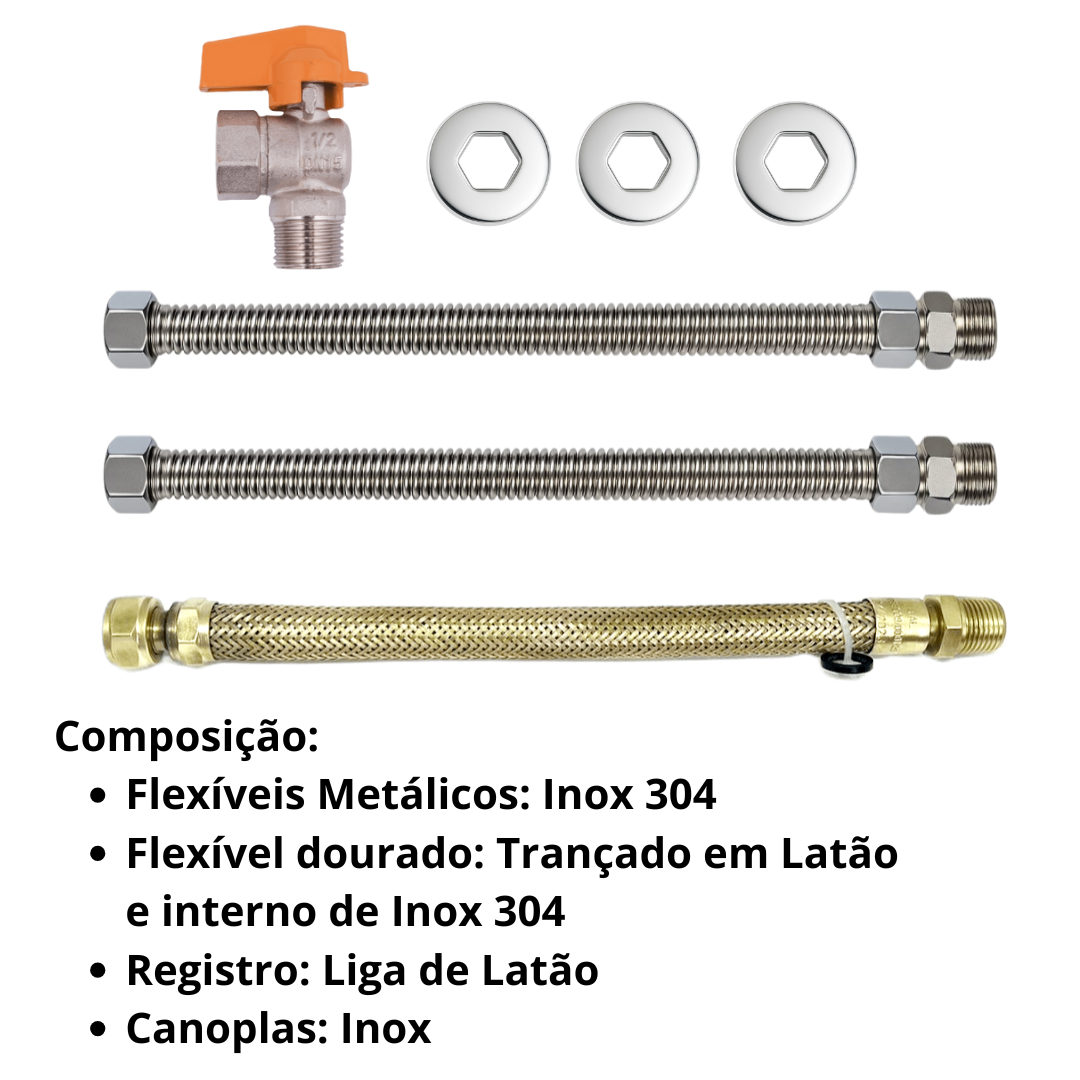 - 3 Unid Mangueiras flexíveis sendo 2 para água quente/fria e 1 para
