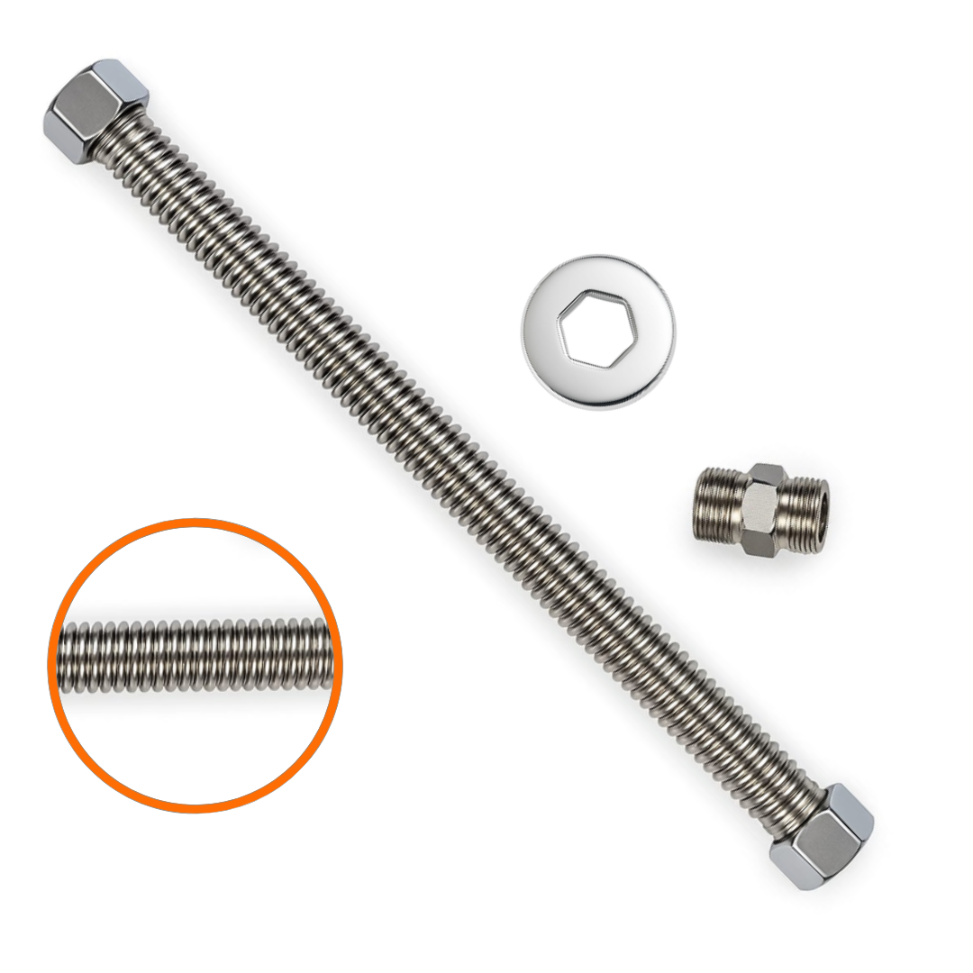 - Compatível com conexões de latão e aço inoxidável