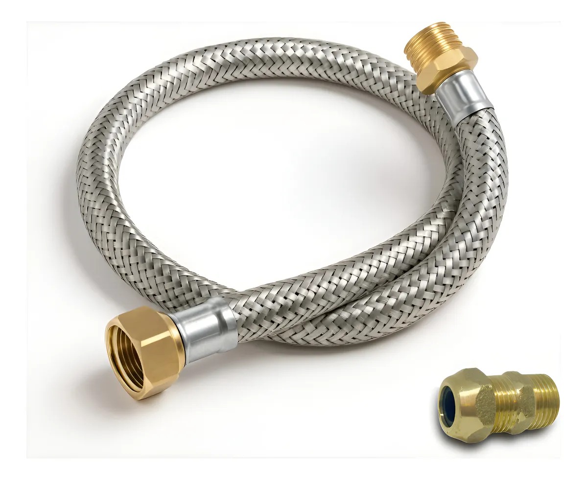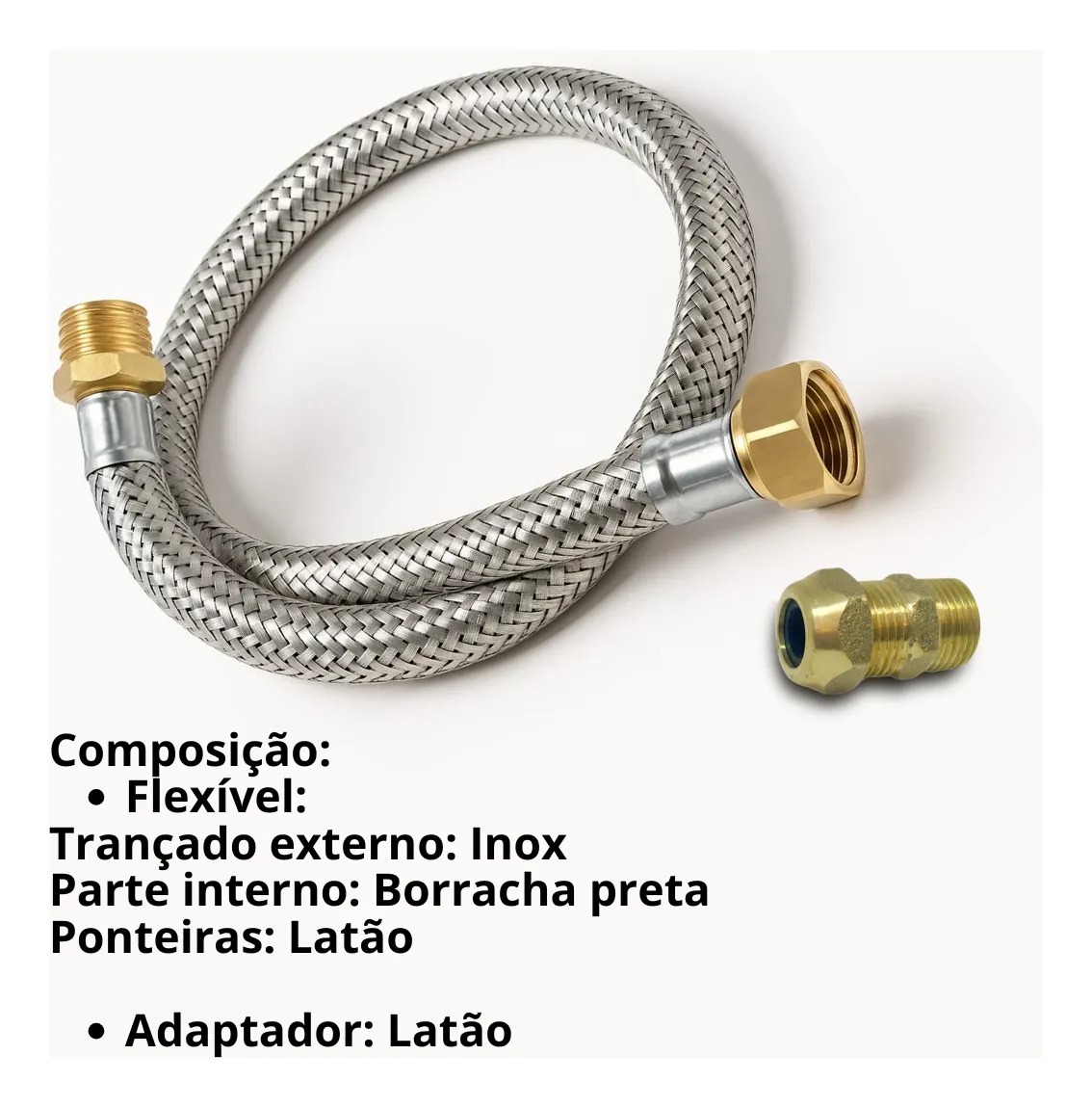 Kit Mangueira com Malha de Aço + Adaptador de Latão para Fogão e Forno - Marca Dalcon