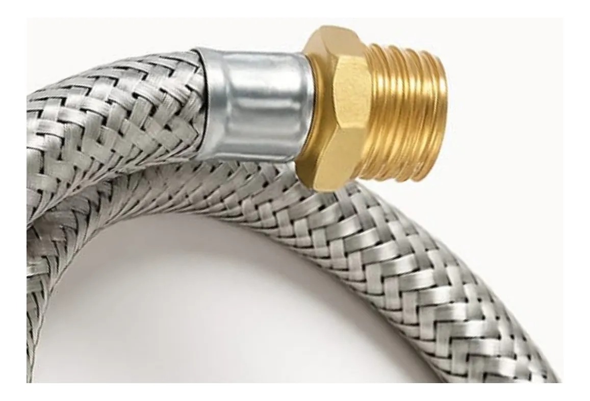 01 (uma) Mangueira com malha de aço, com pontas Macho e Fêmea 1/2"