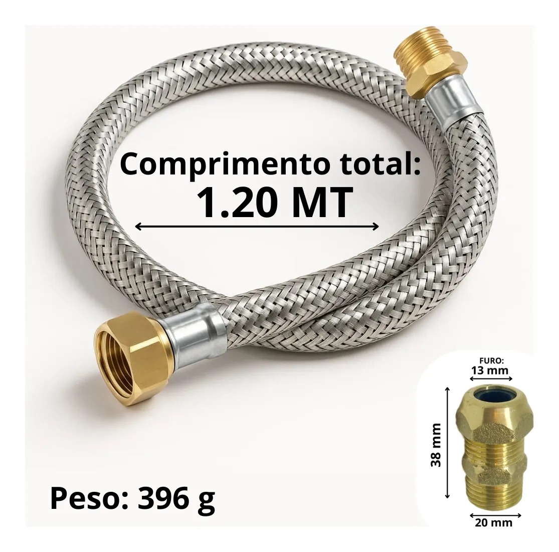 Kit Mangueira com Malha de Aço + Adaptador de Latão para Fogão e Forno - Marca Dalcon