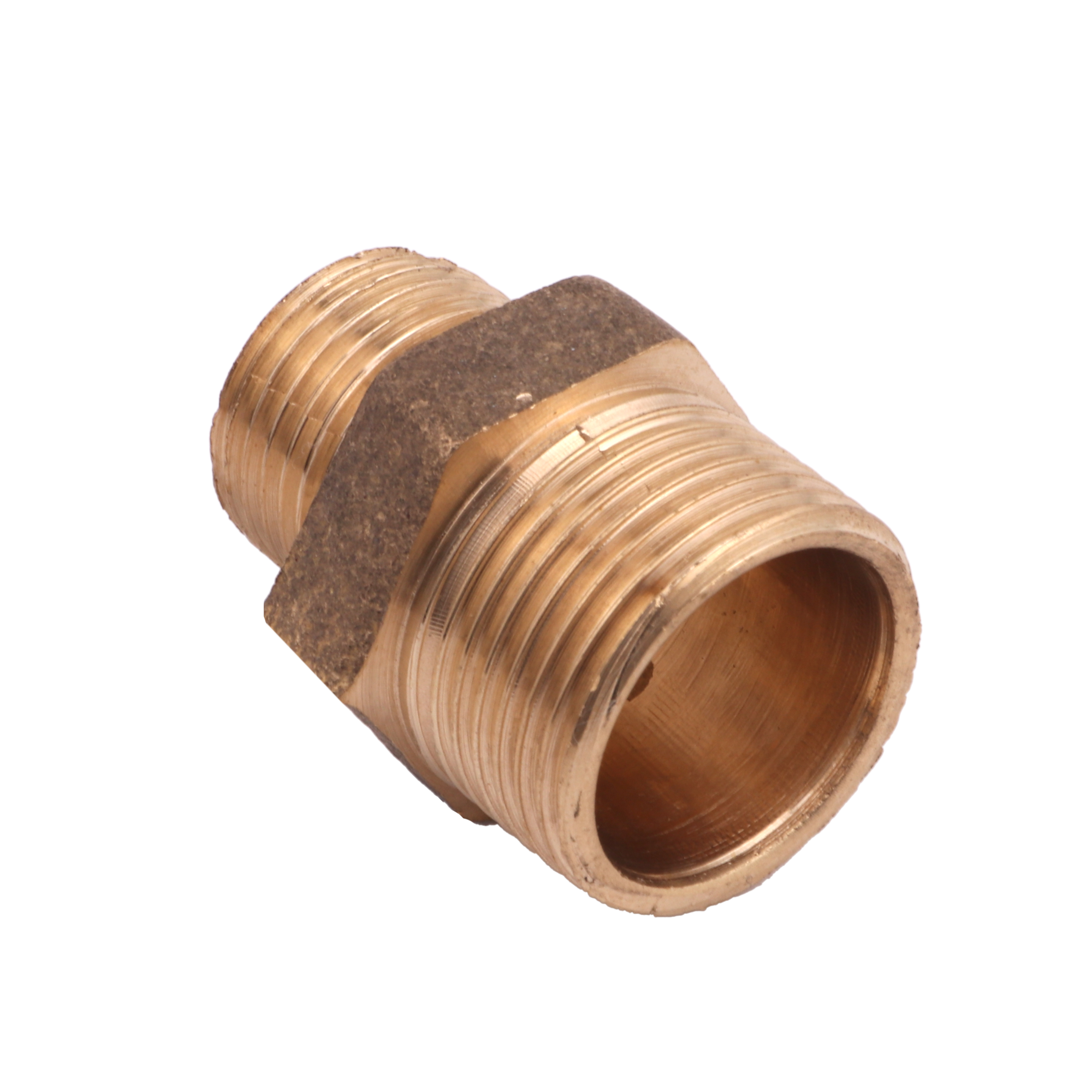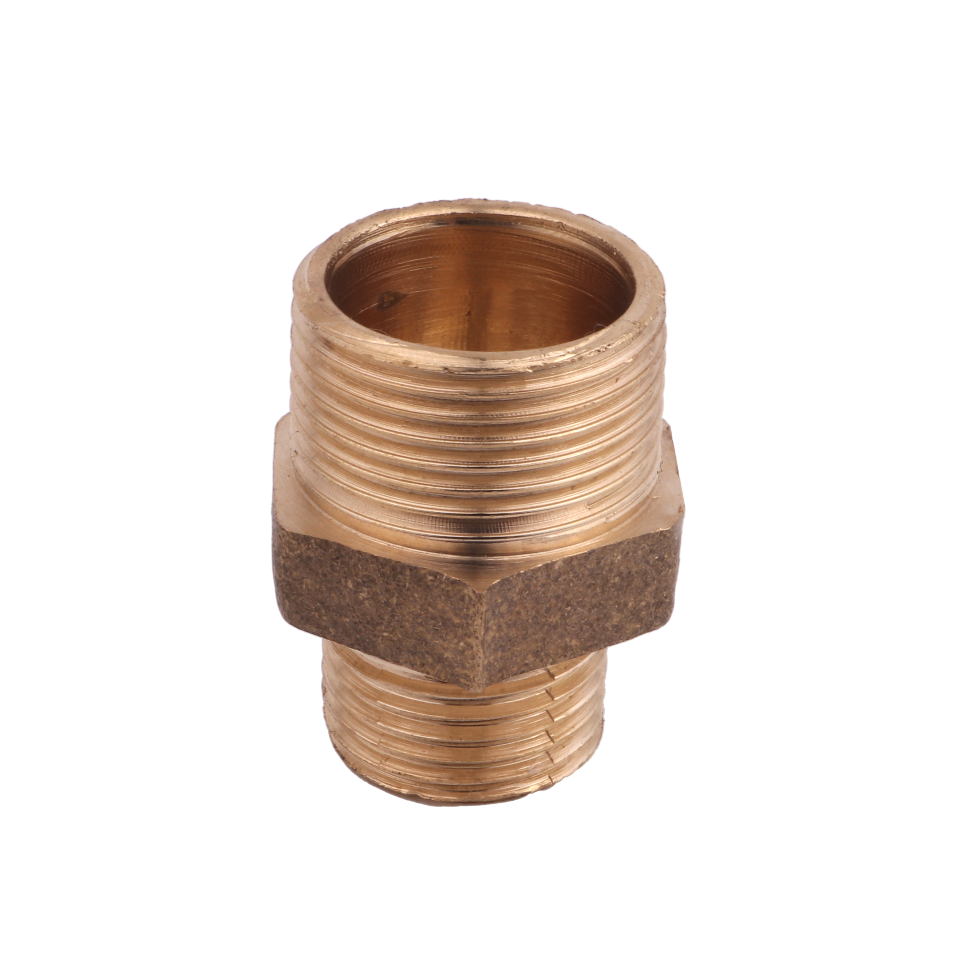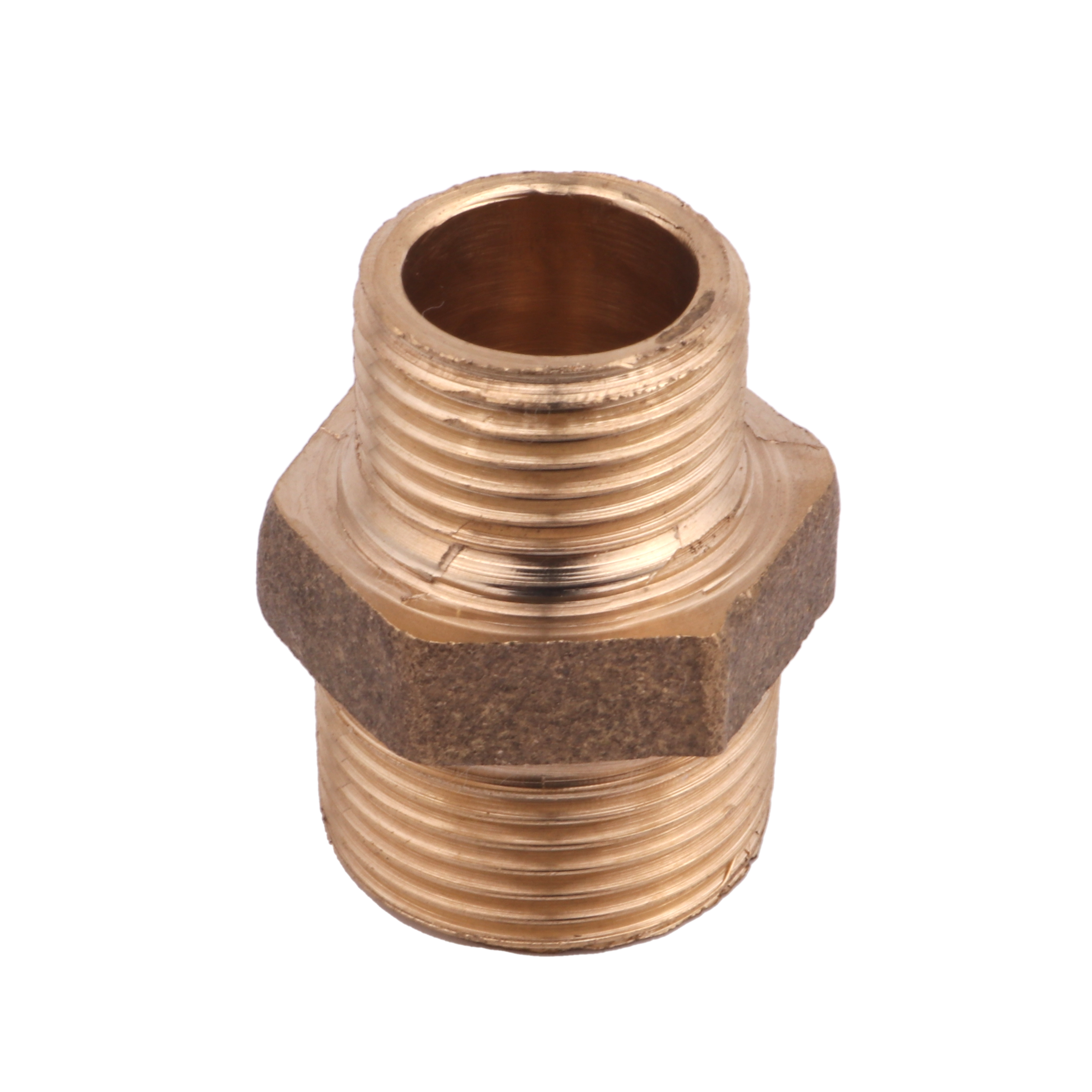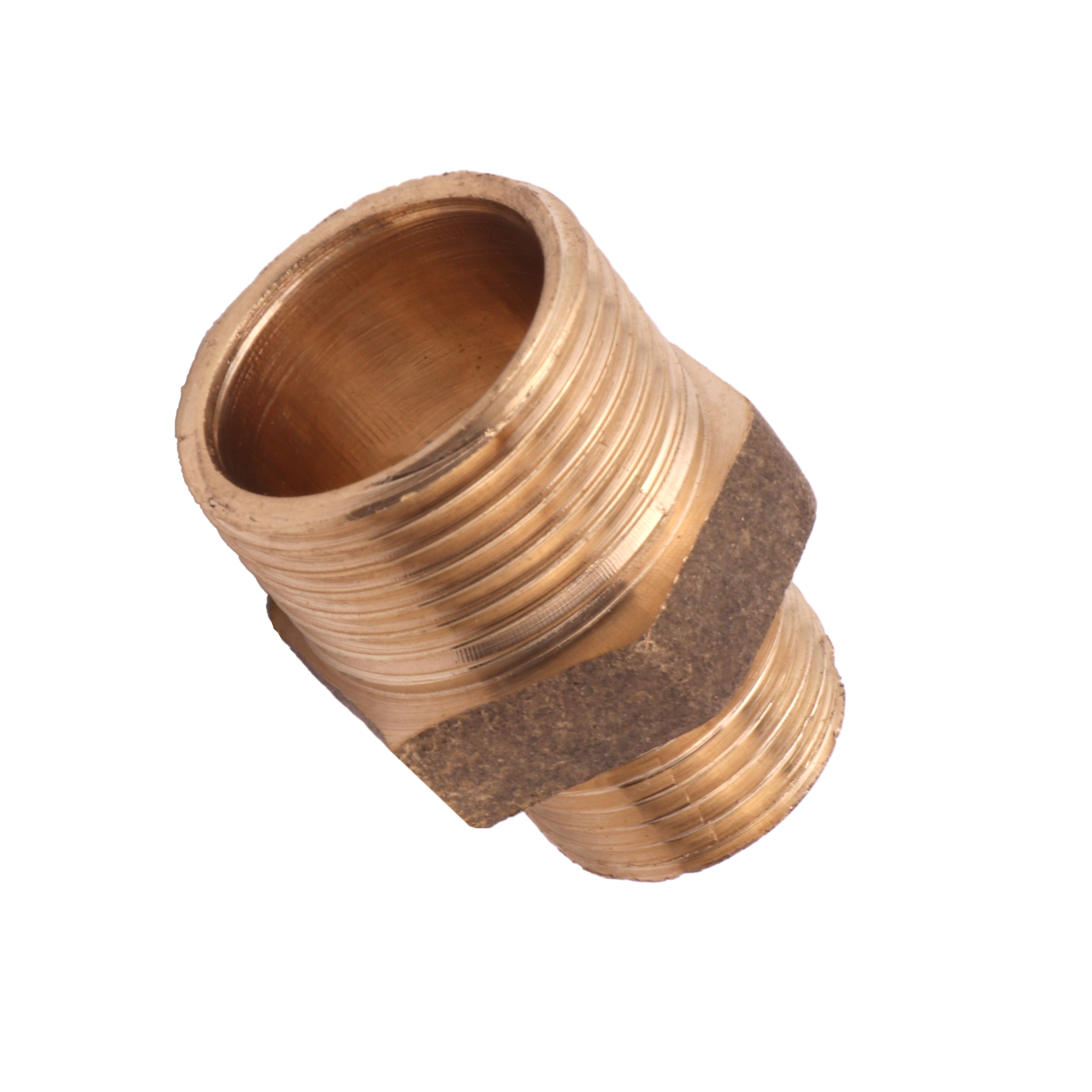 Este tipo de niple de redução em latão amarelo é comumente usado em aplicações industriais, de encanamento e de irrigação, onde uma conexão forte e confiável é necessária entre componentes com tamanhos diferentes de rosca.