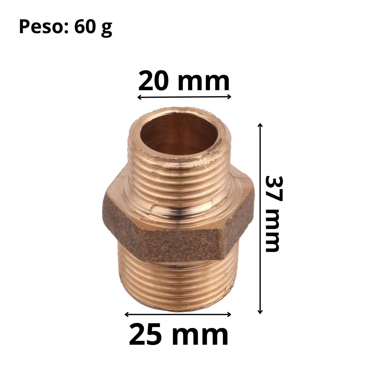 Dimensões do produto: 37mm (Altura) x 25mm (Diâmetro 3/4") x 20mm (Diâmetro 1/2")