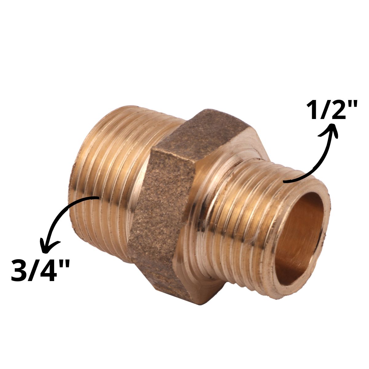 Niple De Redução Em Latão Amarelo Rosca Externa 3/4 X 1/2