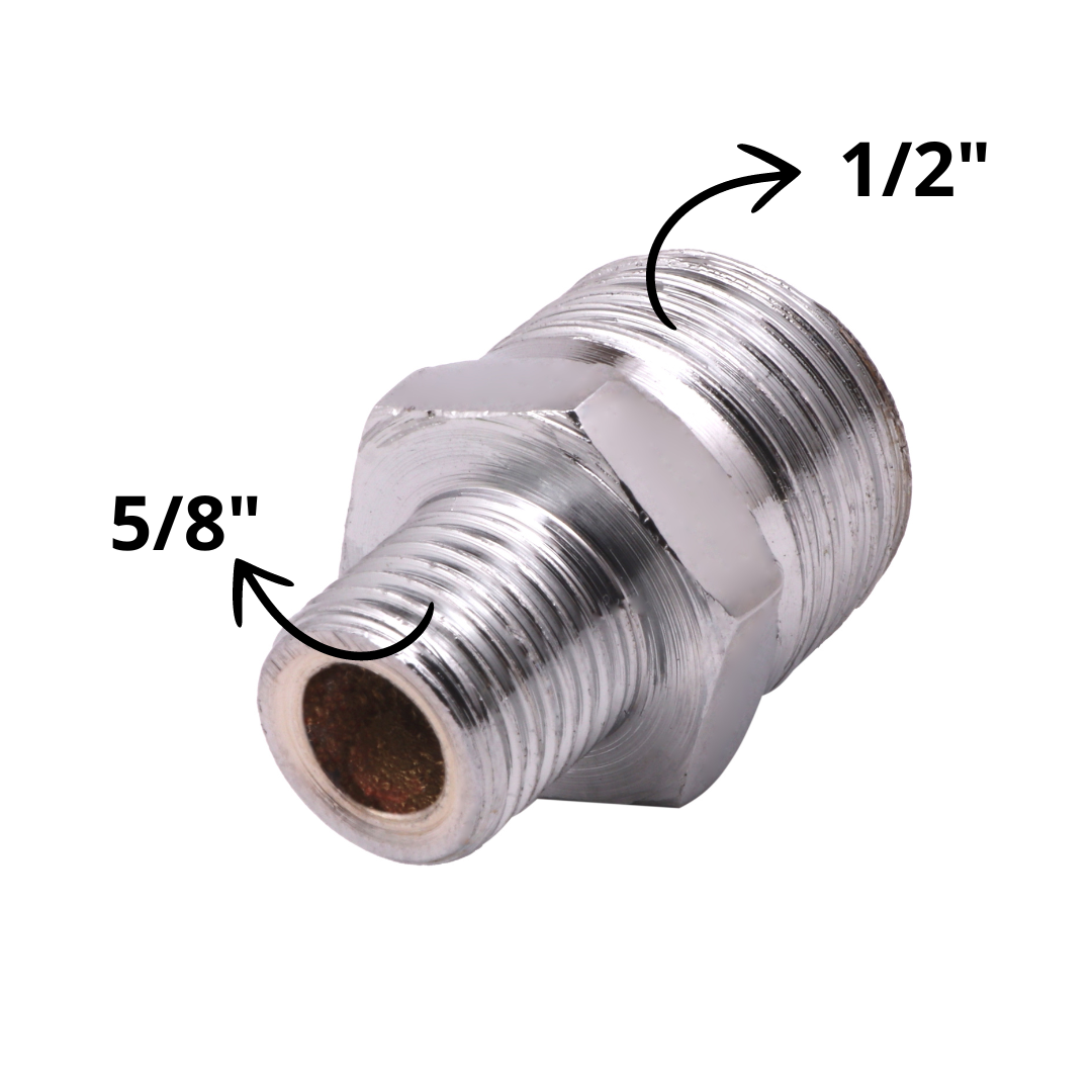 Niple De Redução Em Latão Cromado Rosca Externa ½ BSP x 5/8 UNF