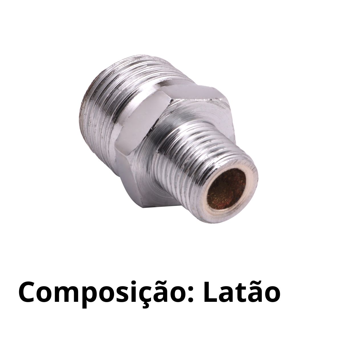 Material: o niple é feito de latão cromado, um material resistente à corrosão e à pressão, com boa condutividade térmica e elétrica.