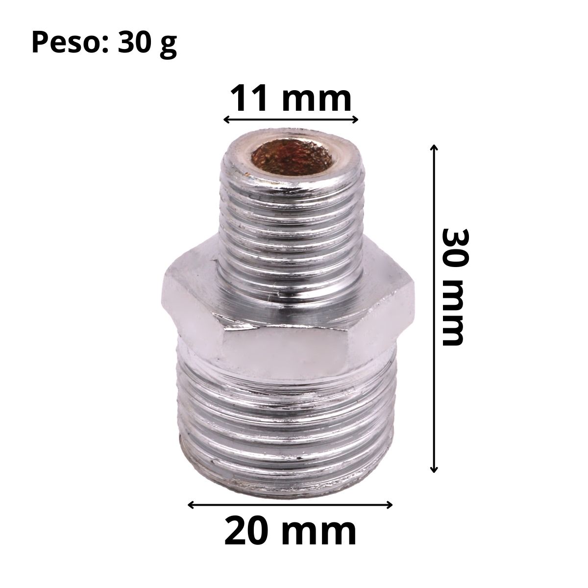 Dimensão do produto: 30mm (Altura) x 20mm (Diâmetro 1/2") x 11mm (Diâmetro 1/4")