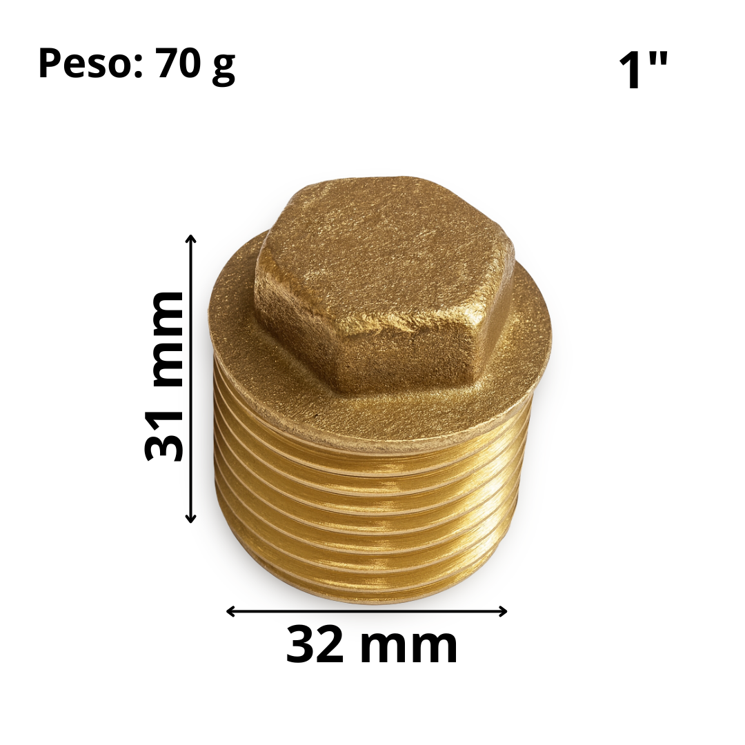 Material: O plug é fabricado em latão amarelo, um material resistente e durável, conhecido por sua alta resistência à corrosão.