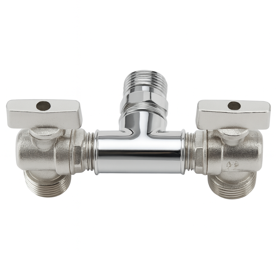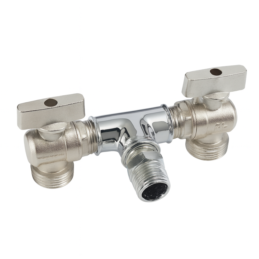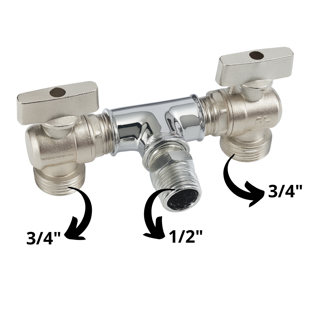 Tê com Dois Registros para Máquina de Lavar - Saída 1/2" x 3/4"