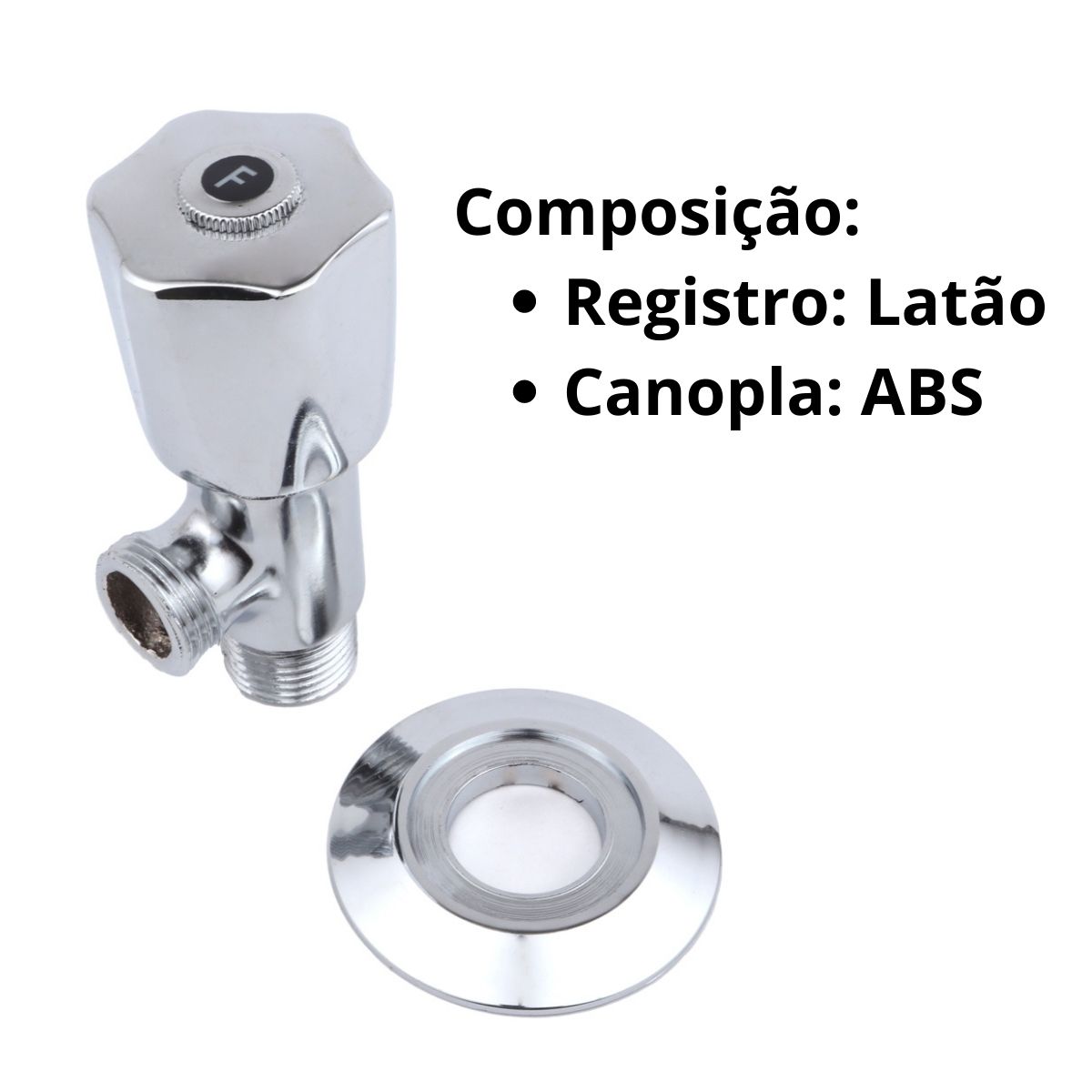 Composição/Material: Latão, Produto 100% metal com acabamento cromado, canopla ABS