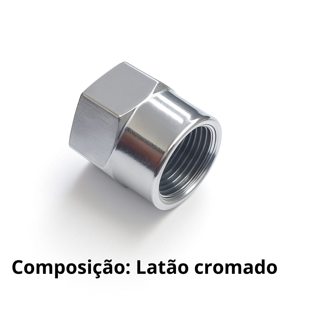 O tampão adaptador plug em latão cromado com rosca fêmea 1/4 possui as seguintes características: