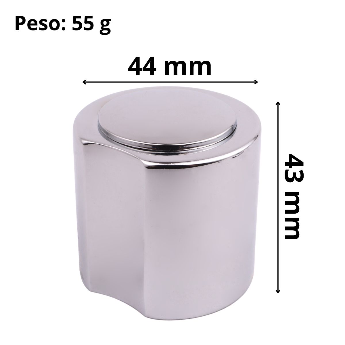 Principais características do volante em metal cromado para acabamento de registro C40: