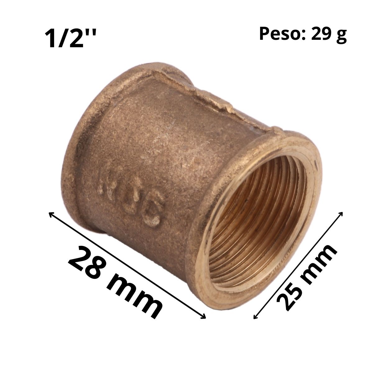 Material: a luva é fabricada em latão amarelo, um material resistente à corrosão e com boa condutividade térmica, adequado para aplicações em sistemas hidráulicos e de gás.