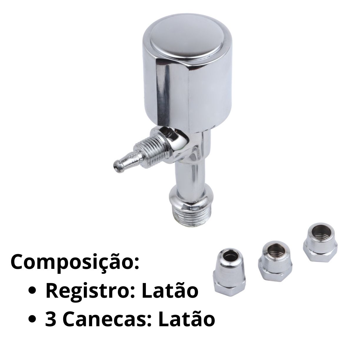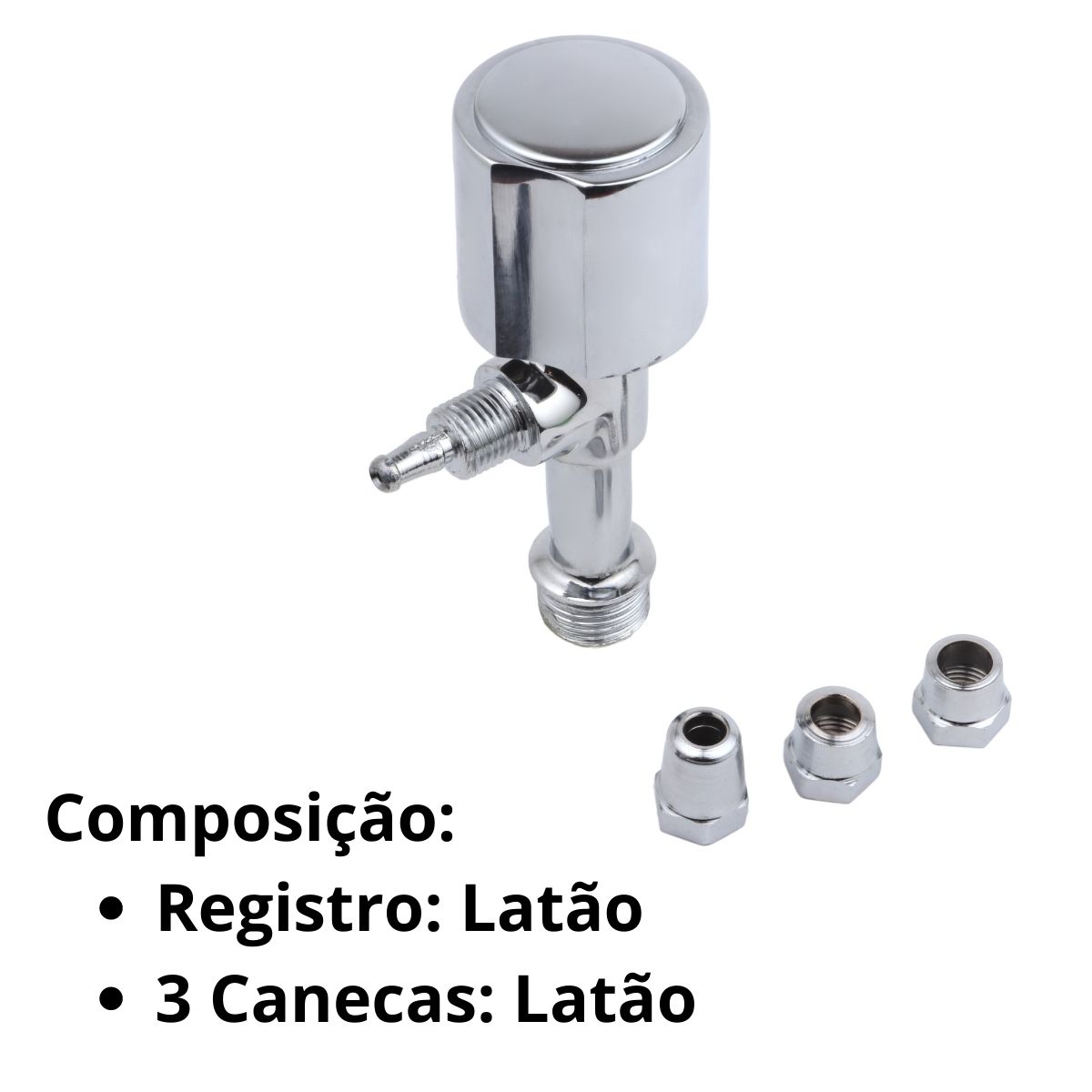 1 (um) Registro Para Filtro Metal Cromado 3 Canecas C40.
