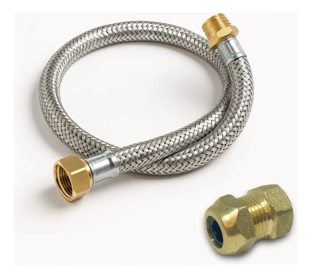 Kit Mangueira com Malha de Aço 1/2" + Adaptador Fêmea para Bico 3/8" em Latão – Dalcon