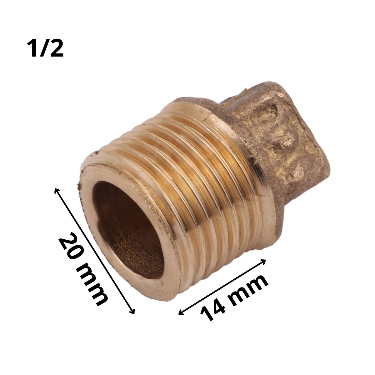 KIT 5 PLUGS ROSCA MACHO EM LATÃO AMARELO PARA PAREDE 1/2