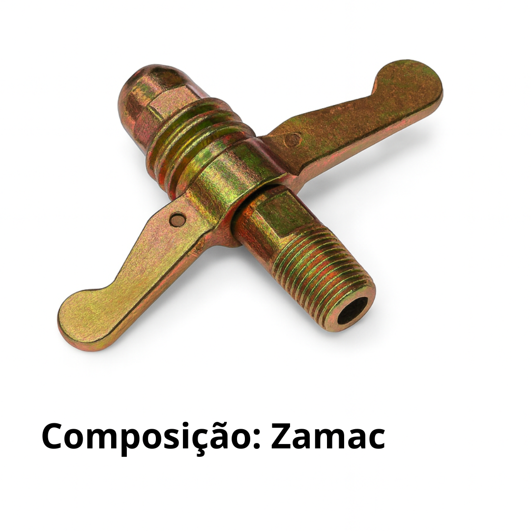 Conexão Borboleta Para Botijão de gás Zamac P13 rosca macho
