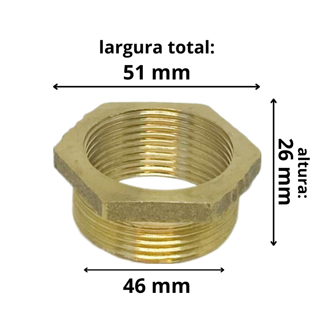 As características técnicas da Bucha de Redução em Latão Amarela Rosca x Rosca 1.1/2 X 1.1/4 incluem: