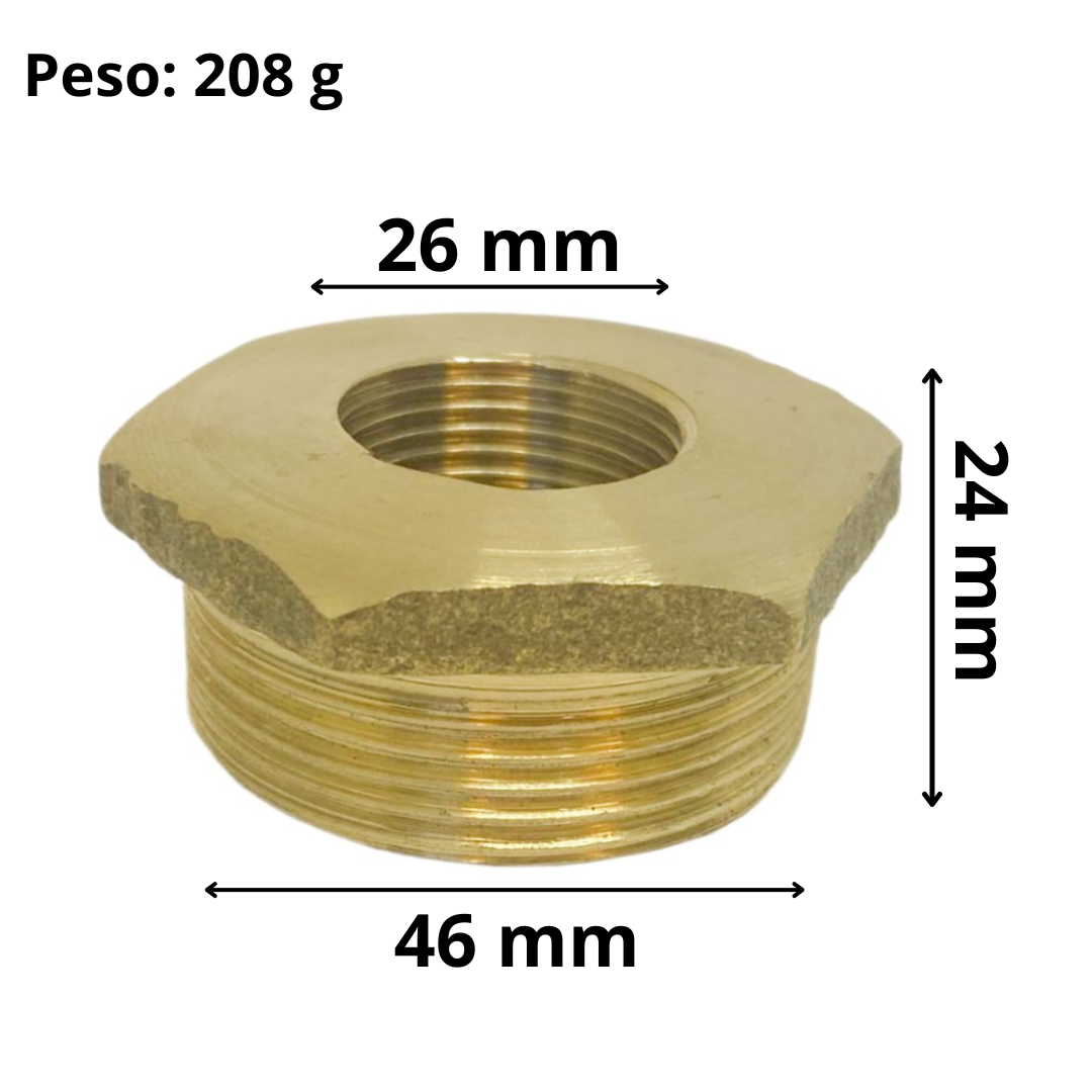 As características técnicas da Bucha de Redução em Latão Amarela Rosca x Rosca 1.1/2" x 3/4" incluem: