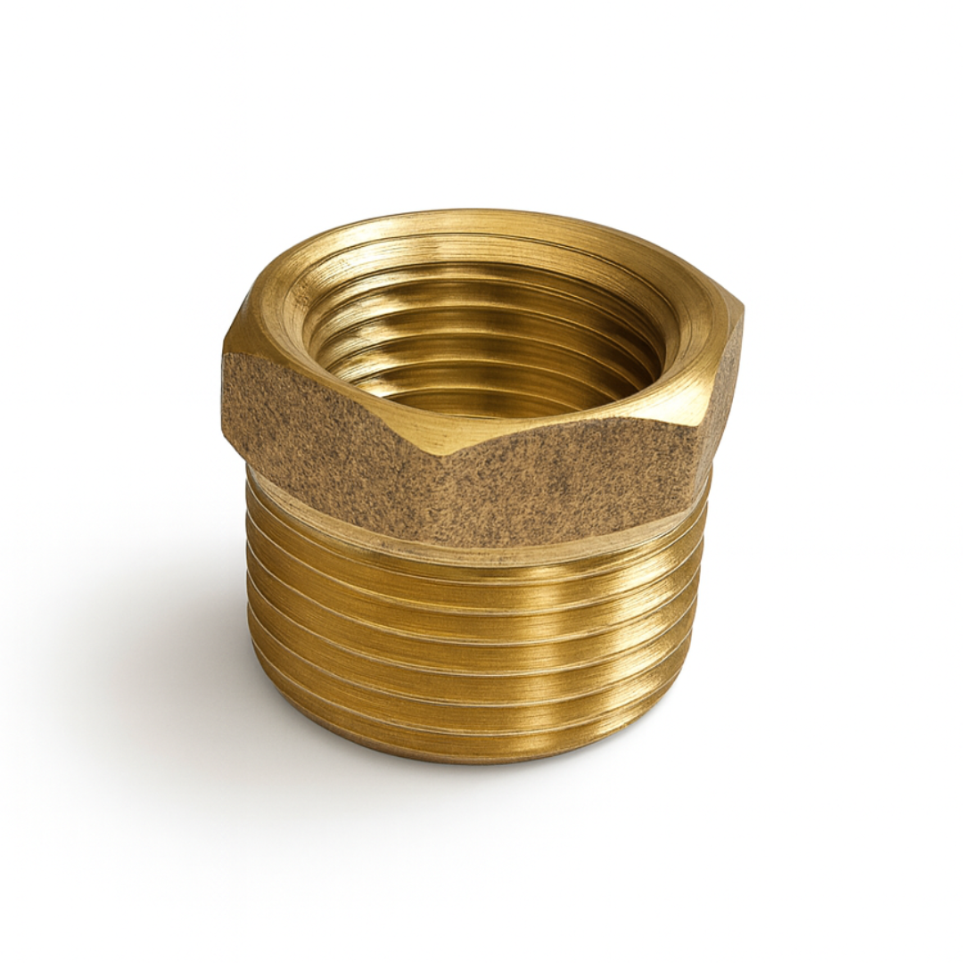 Material: A bucha é feita de latão amarelo, um material resistente à corrosão e oxidação, que aumenta sua durabilidade e vida útil.