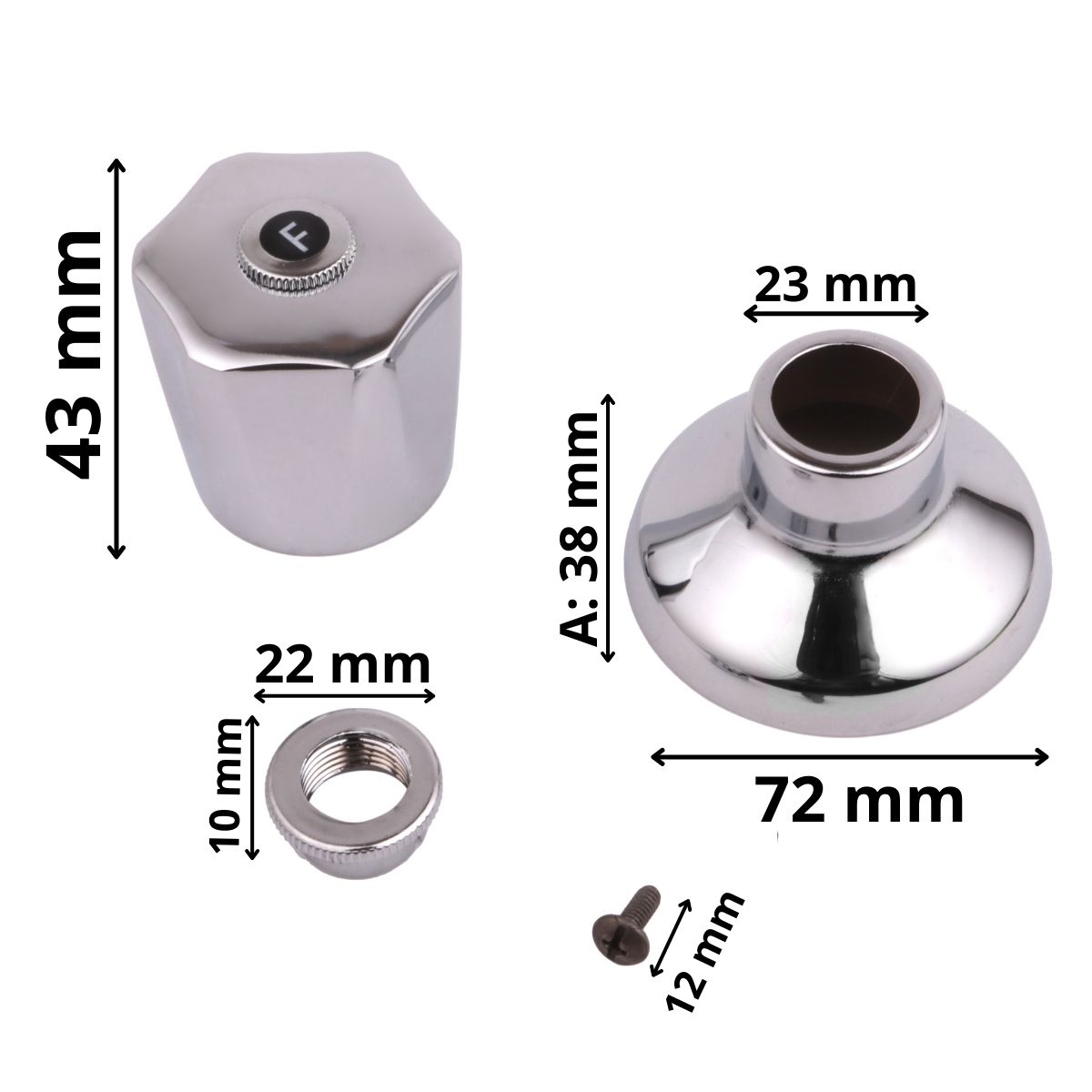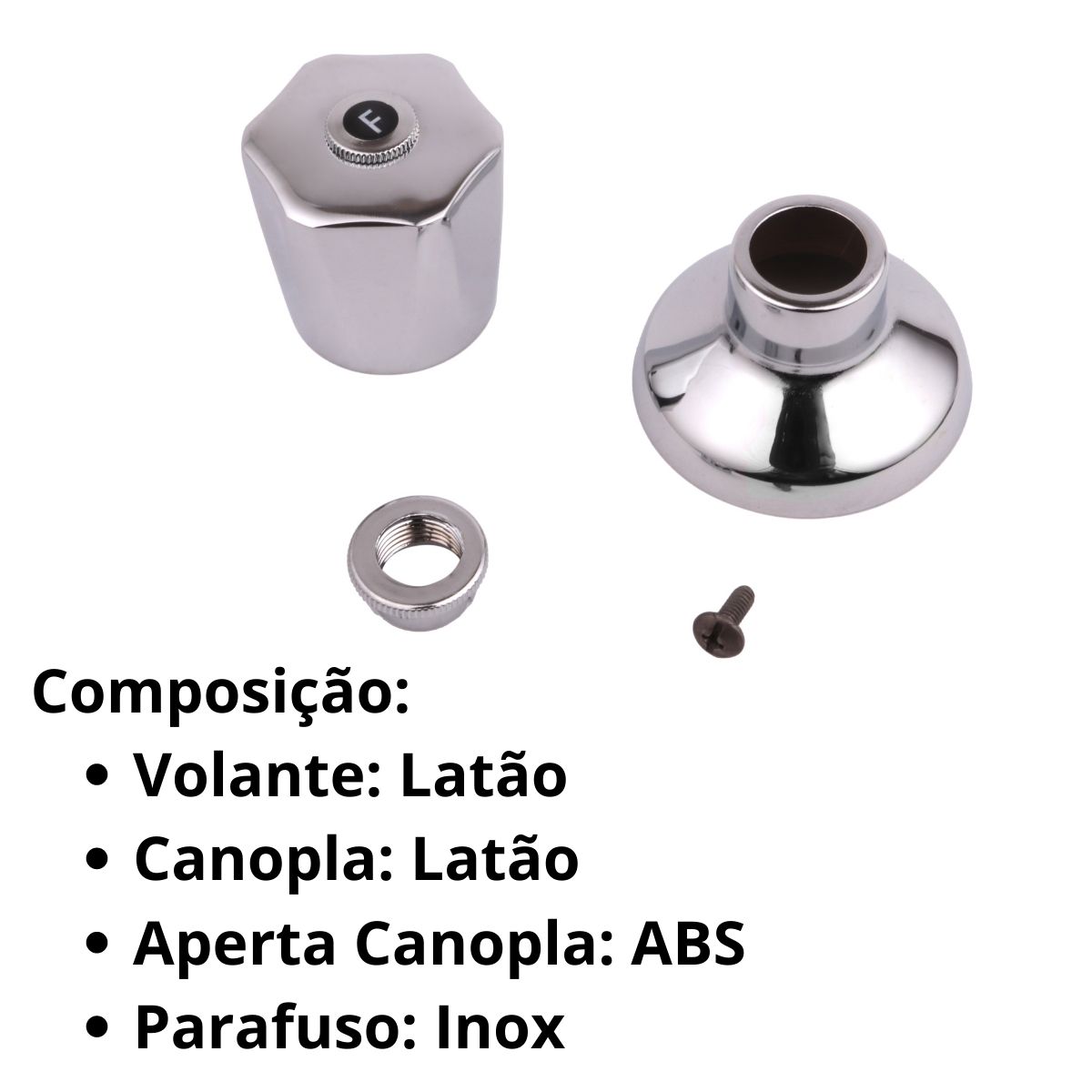 Dimensões do produto: Volante Altura 43mm / Canopla Acabamento Altura 38mm x Comprimento 23 mm x Largura 72mm